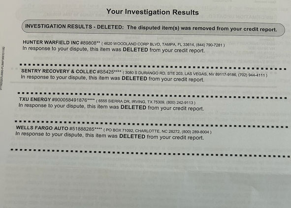 That's a 97 point increase on Equifax, 99 point increase on Experian & 138 increase on TransUnion within 1 dispute round!